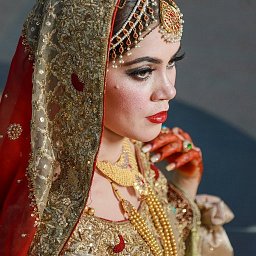 Maroon and Gold Bridal Anarkali Dress with Heavy Embroidery and Dupatta