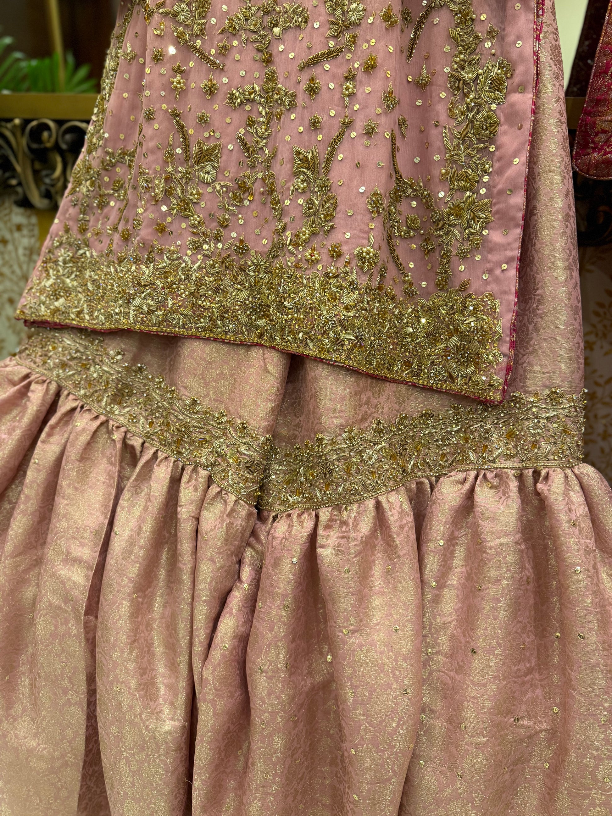 Blush Pink Embroidered Dress with ghrara & dark pink Dupatta