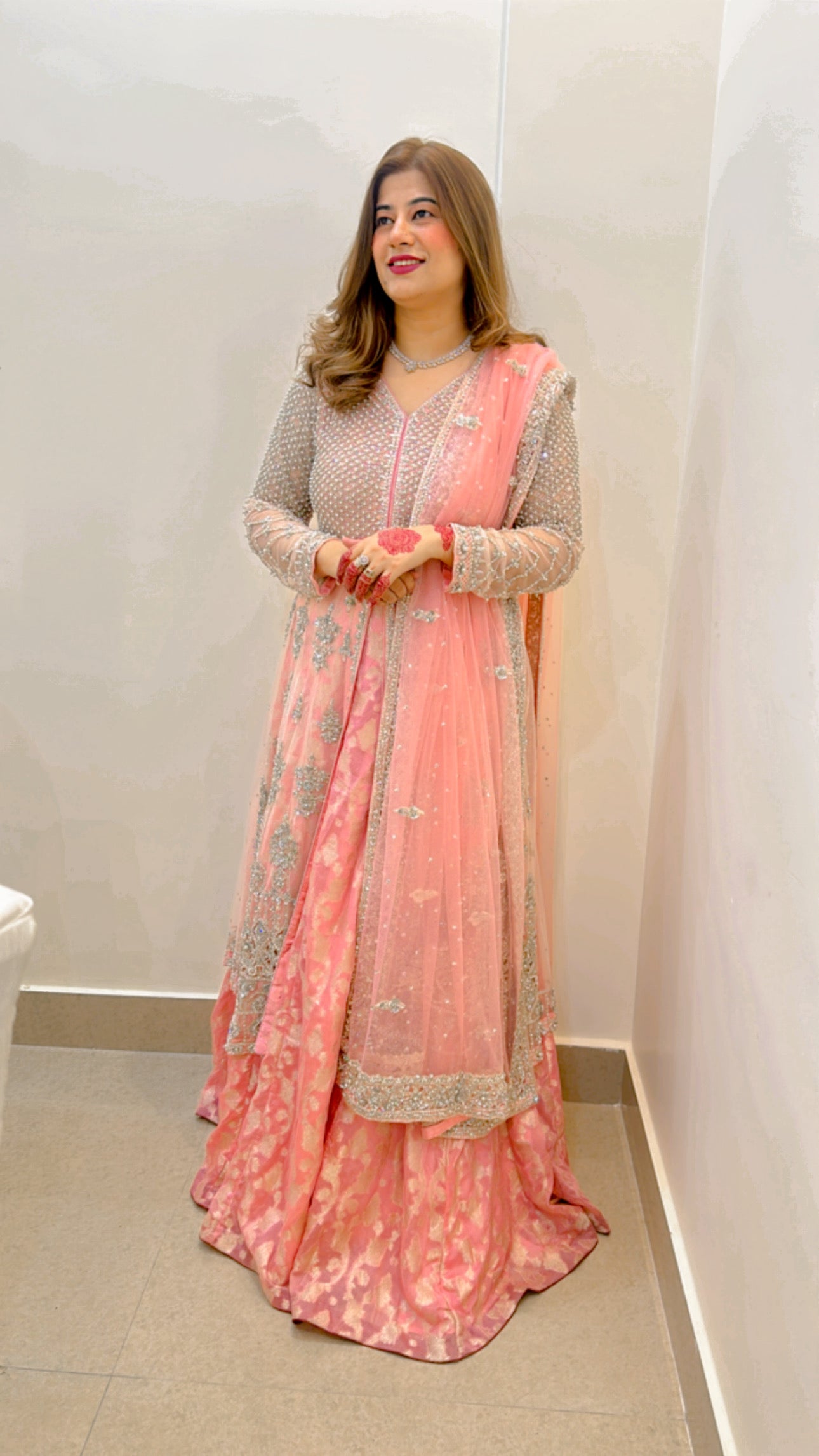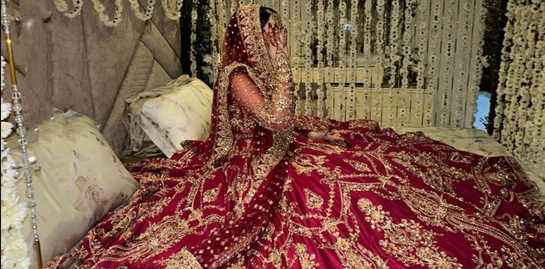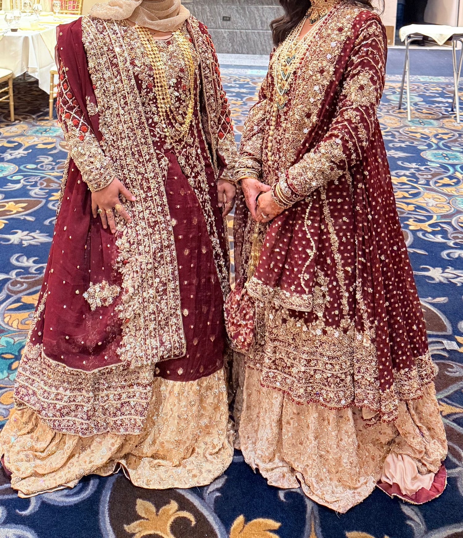 Maroon and Gold Bridal Anarkali Dress with Heavy Embroidery and Dupatta